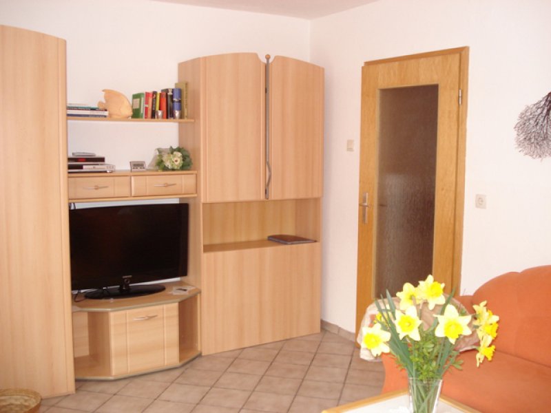 Wohnschlafzimmer mit Schlafcouch,Schlafzimmer (Doppelbett) Wohnküche (mit Geschirrspülmaschine), Dusche, WC, Flur